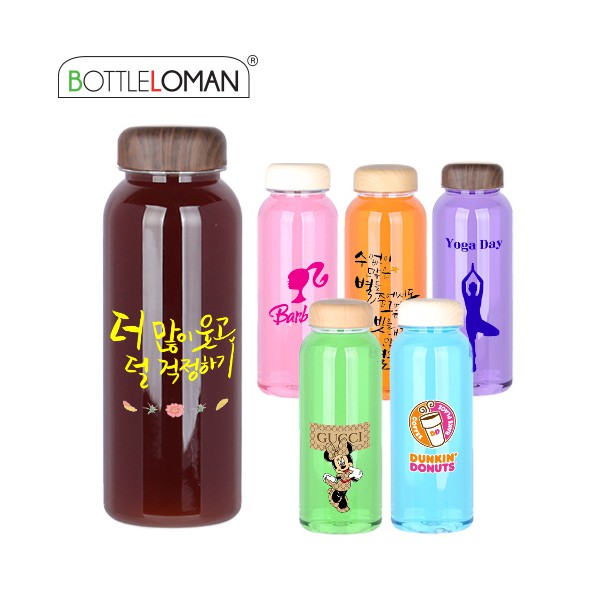 | 인쇄 | 실크인쇄 1도/풀컬러인쇄 가능(별도문의) | 재질 | 보틀: 트라이탄/뚜껑:PP+우드수전사/속캡: PP |