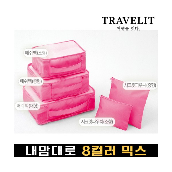 트래블잇 내맘대로 8컬러 믹스 여행용파우치 5종세트-핫핑크