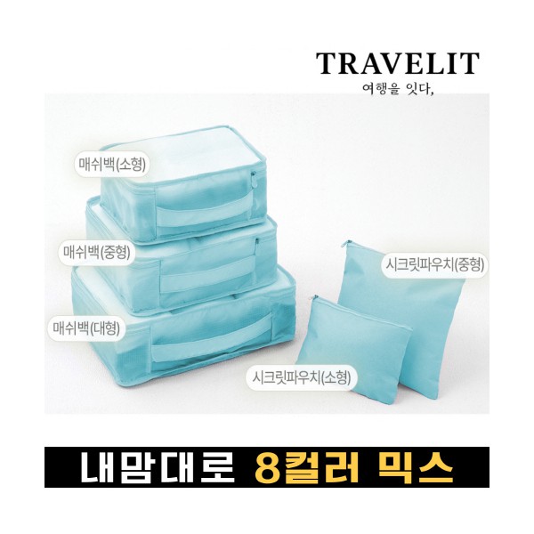 트래블잇 내맘대로 8컬러 믹스 여행용파우치 5종세트-스카이
