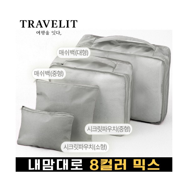 트래블잇 내맘대로 8컬러 믹스 여행용파우치 4종세트-그레이