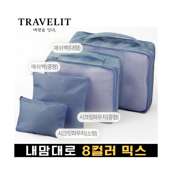 트래블잇 내맘대로 8컬러 믹스 여행용파우치 4종세트-네이비