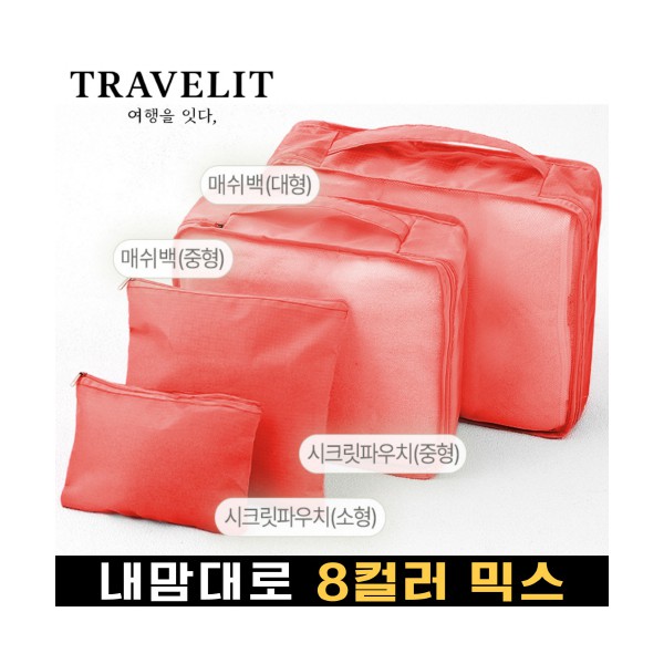 트래블잇 내맘대로 8컬러 믹스 여행용파우치 4종세트-오렌지