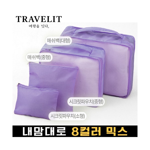 트래블잇 내맘대로 8컬러 믹스 여행용파우치 4종세트-퍼플