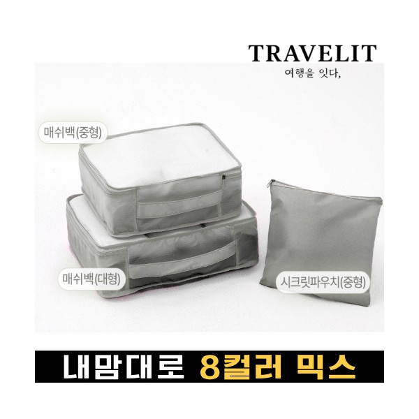 트래블잇 내맘대로 8컬러 믹스 여행용파우치 3종세트-그레이