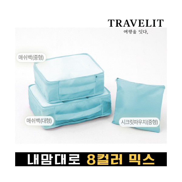 트래블잇 내맘대로 8컬러 믹스 여행용파우치 3종세트-스카이