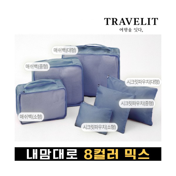 트래블잇 내맘대로 8컬러 믹스 여행용파우치 6종세트-네이비