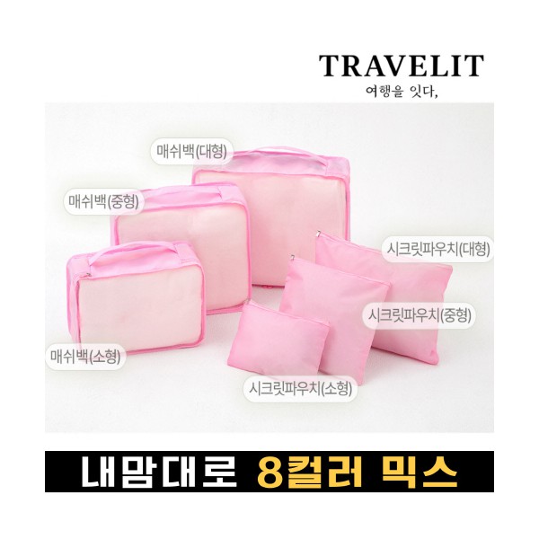 트래블잇 내맘대로 8컬러 믹스 여행용파우치 6종세트-핑크