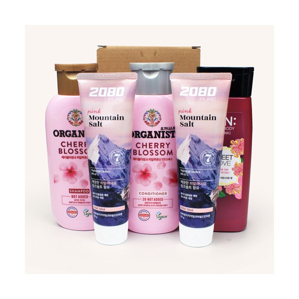 LG 오가니스트 샴푸+컨디셔너+온더바디 바디워시+2080 핑크솔트 치약 120g 2개 + 끈케이스