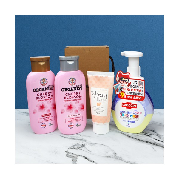| 기타사항 | LG 오가니스트 샴푸+컨디셔너+랩신 핸드워시+과일나라 핑크피치 핸드크림+끈케이스 스티커 제작 및 부착 별도문의 |