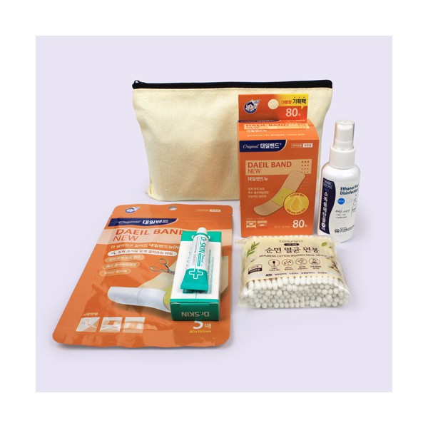 | 기타사항 | 잘라쓰는 정품 대일밴드 특대형 5매입 + 닥터스킨연고 + 소독용 에탄올스프레이형 + 대일밴드 혼합21매 + 에코파우치 에코파우치 실크인쇄 별도문의 종이케이스 추가 별도문의 |