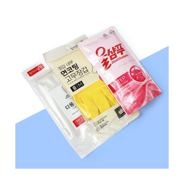| 기타사항 | 다용도앞치마 2매 + 면코팅 고무장갑 + 애경 울샴푸 리필 300ml + 종이케이스 스티커 제작 및 부착 문의 |
