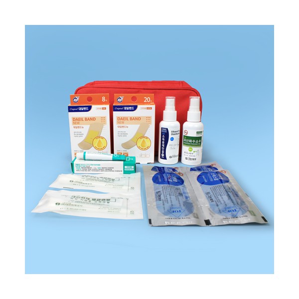 | 기타사항 | 정품 대일밴드 대형8매+표준형 20매 + 스프레이 에탄올 소독제 + 스프레이 과산화수소수 소독제 + 닥터스킨 상처 연고 + 스틱스왑 4매 + 멸균면봉 2매입 2개 + 구급 파우치 구급파우치 인쇄 별도문의 종이케이스 추가 별도문의 |