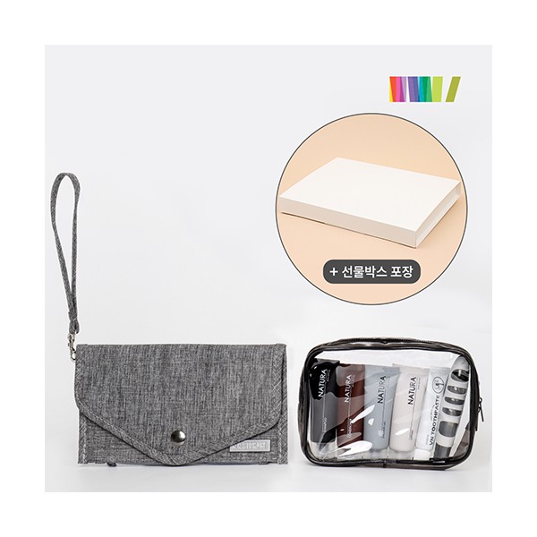 | 규격 | 여권파우치(210*120mm), 어메니티(샴푸,컨디셔너,샤워젤,로션- 30ml, 치약20g) | 색상 | 여권파우치(그레이,퍼플) |
