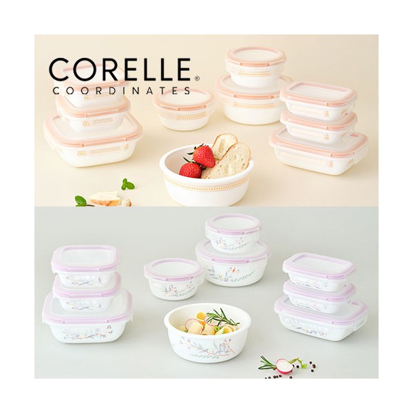 코렐_코디네이츠 밀크글라스 밀폐용기 혼합 10종 (산호세/자카드밴드)