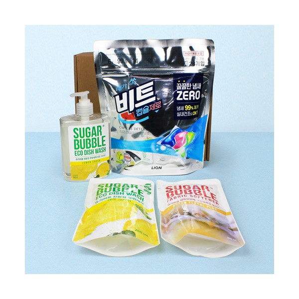| 기타사항 | 비트 캡슐세제 28입+슈가버블 주방세제 470ml 펌프형+주방세제 리필 280ml+섬유유연제 리필 300ml+끈케이스 스티커 제작 및 부착 별도문의 |