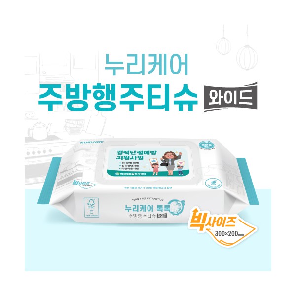 누리케어 주방행주티슈 와이드 20매 (생분해원단 100%)