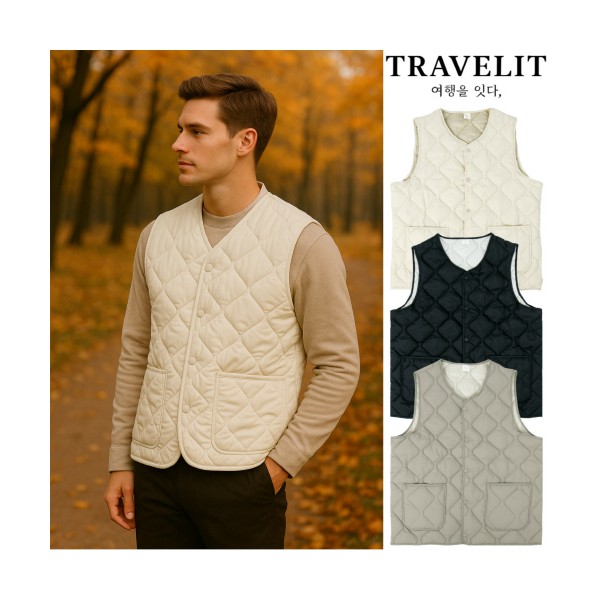 트래블잇 데일리 웜 초경량 패딩 조끼-웜아이보리