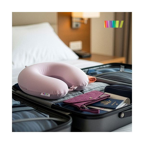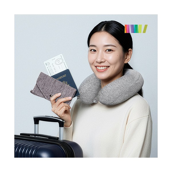 | 인쇄 | 1도 실크인쇄(파우치에 인쇄) | 재질 | 목베개(메모리폼,폴리에스테르),여권파우치(폴리에스터) |