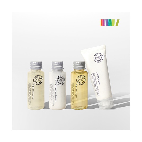 | 규격 | 삼푸30ml, 컨디셔너30ml, 샤워젤30ml,로 션30ml,, 파우치(125*115*40mm), 종이케이스(180*35*130mm) | 색상 | 상세페이지 참조 |