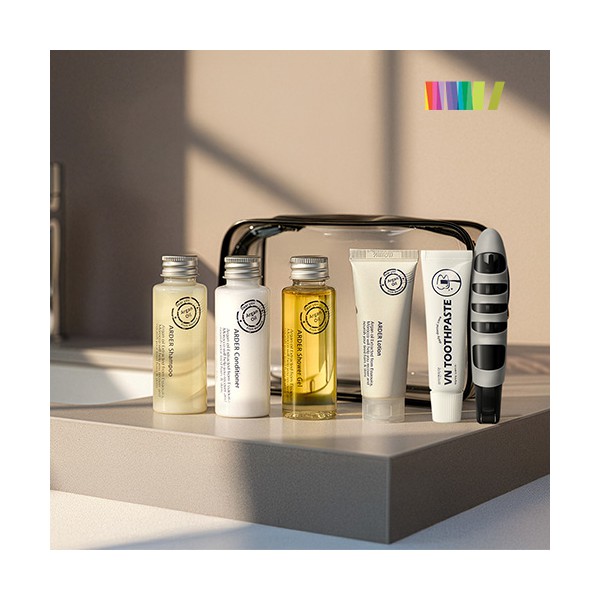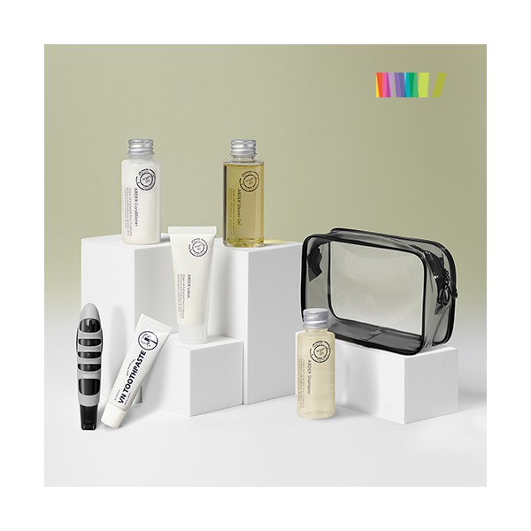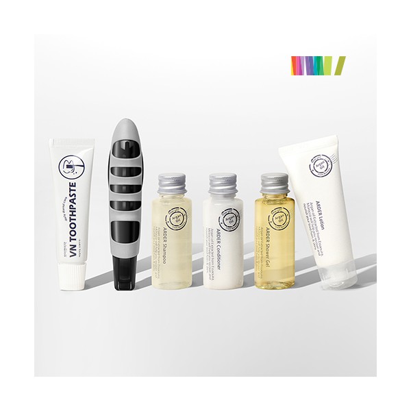 | 규격 | 삼푸30ml, 컨디셔너30ml, 샤워젤30ml, 로션30ml, 치약20g, 파우치(165*115*40mm), 종이케이스(180*35*130mm) | 색상 | 상세페이지 참조 |