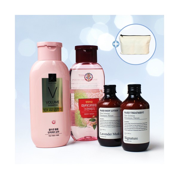 | 기타사항 | LG생활건강 엘라스틴 샴푸+마카다미아 바디워시+NARD 바디로션+트리트먼트+지퍼파우치 에코파우치 실크1도 인쇄 별도문의 종이케이스 추가 별도문의 |