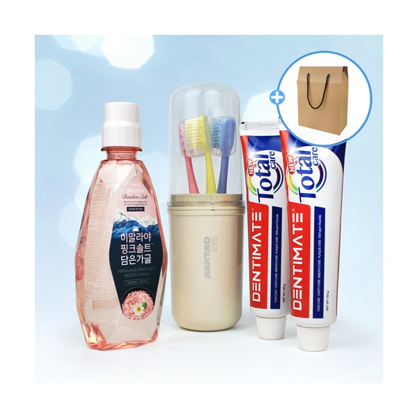 | 기타사항 | LG생활건강 핑크솔트 가글 320ml + 휴대용 양치컵 + 부케가르니 미세모칫솔 3개 + 덴티메이트 치약 150g 2개 + 끈케이스 스티커 제작 및 부착 별도문의 케이스 이미지 변경 가능, 상세페이지 참조 (어려운이웃 복지사각 / 치매예방 / 금연홍보 / 슬기로운 안전생활) |