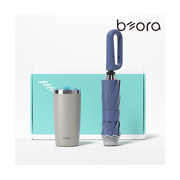 BOR 텀블러 우양산세트 키트 (아이언 베이직 텀블러+비너그립 거꾸로 3단 자동 우양산)