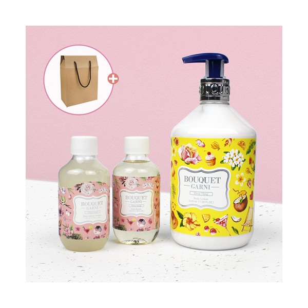 | 기타사항 | 부케가르니 바디로션 520ml + 바디워시 100ml + 샴푸 100ml 스티커 제작 및 부착 별도문의 케이스 실크1도인쇄 별도문의 |