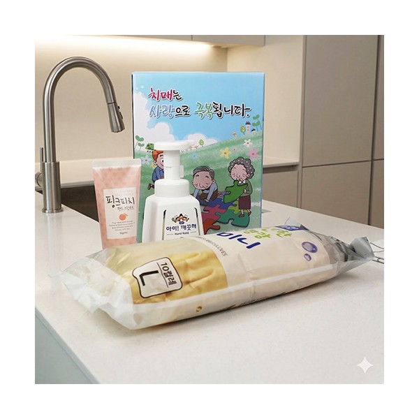 | 기타사항 | 단미니고무장갑 10켤레 + 주방전용 아이깨끗해 + 과일나라 핸드크림 + 치매예방 케이스+케이스 교체 가능 케이스 이미지 변경 가능, 상세페이지 참조 (무지케이스 / 어려운이웃 복지사각 / 치매예방 / 금연홍보 / 슬기로운 안전생활) 스티커 제작 및 부착 별도문의 |